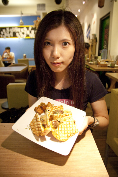 一樣是白土司用特殊的烤箱…讓土司是網格狀的…