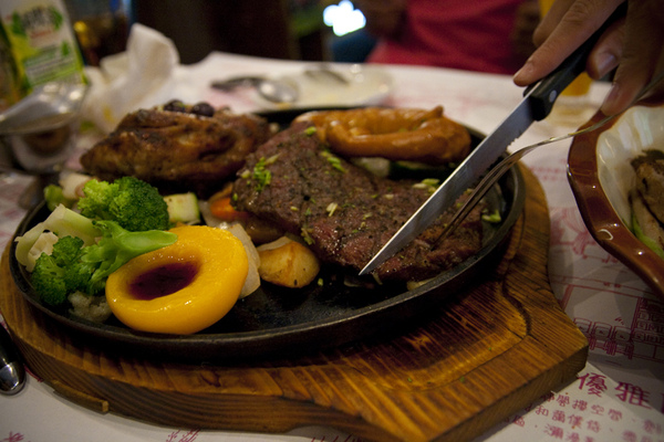 碳烤的春雞及牛排…